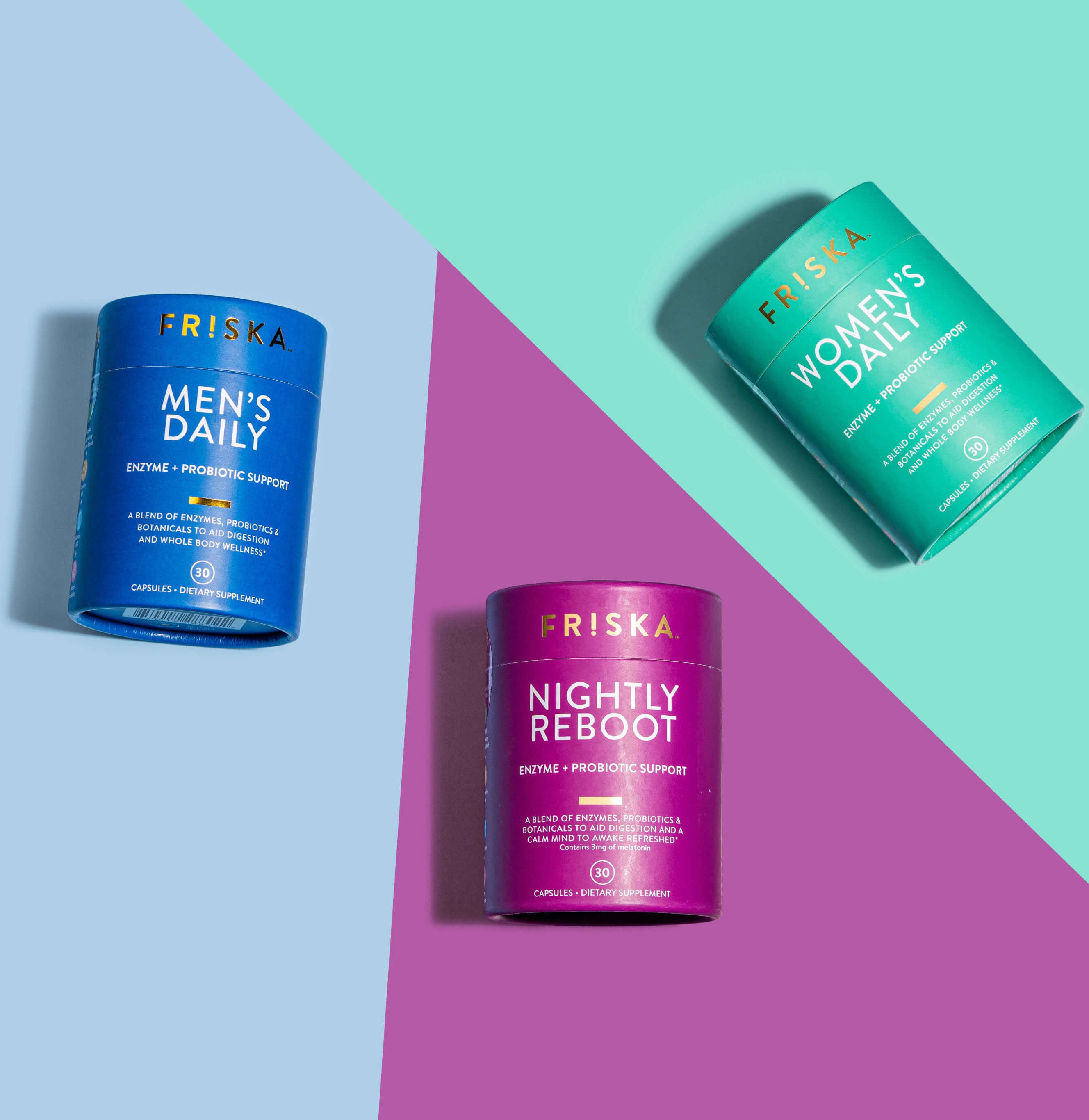 With a unique blend of enzymes and science-backed probiotics, including clinically proven probiotic strain DE111®, FRISKA supports better nutrient absorption, aids digestion, and helps break down food more efficiently.*